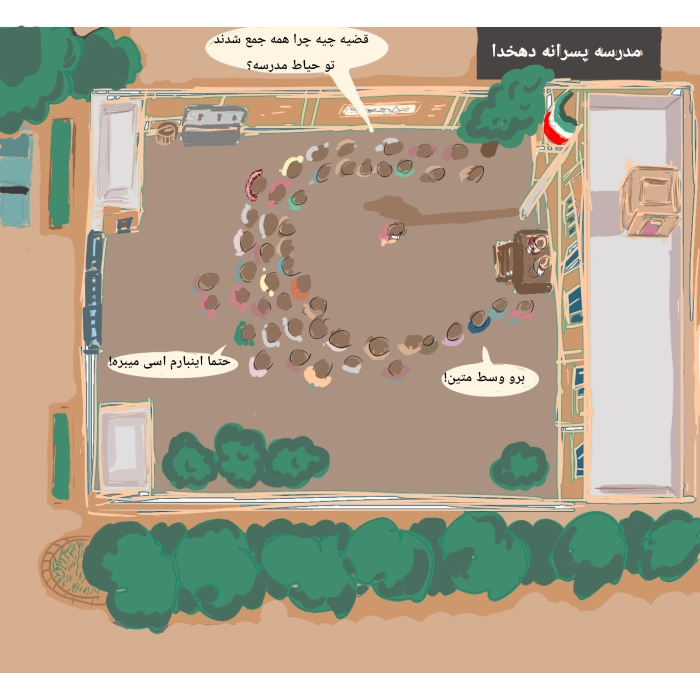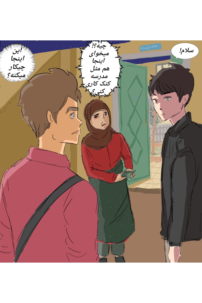 لوگو ،نام کمیکستون روی یک سطح فرش مانند